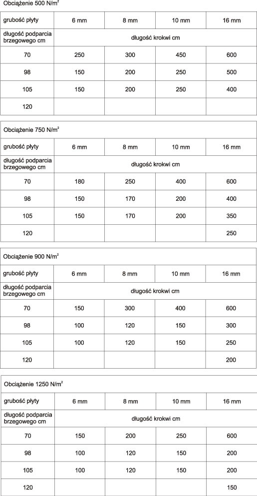 Dopuszczalne odstępy podparcia płyt krokwiami